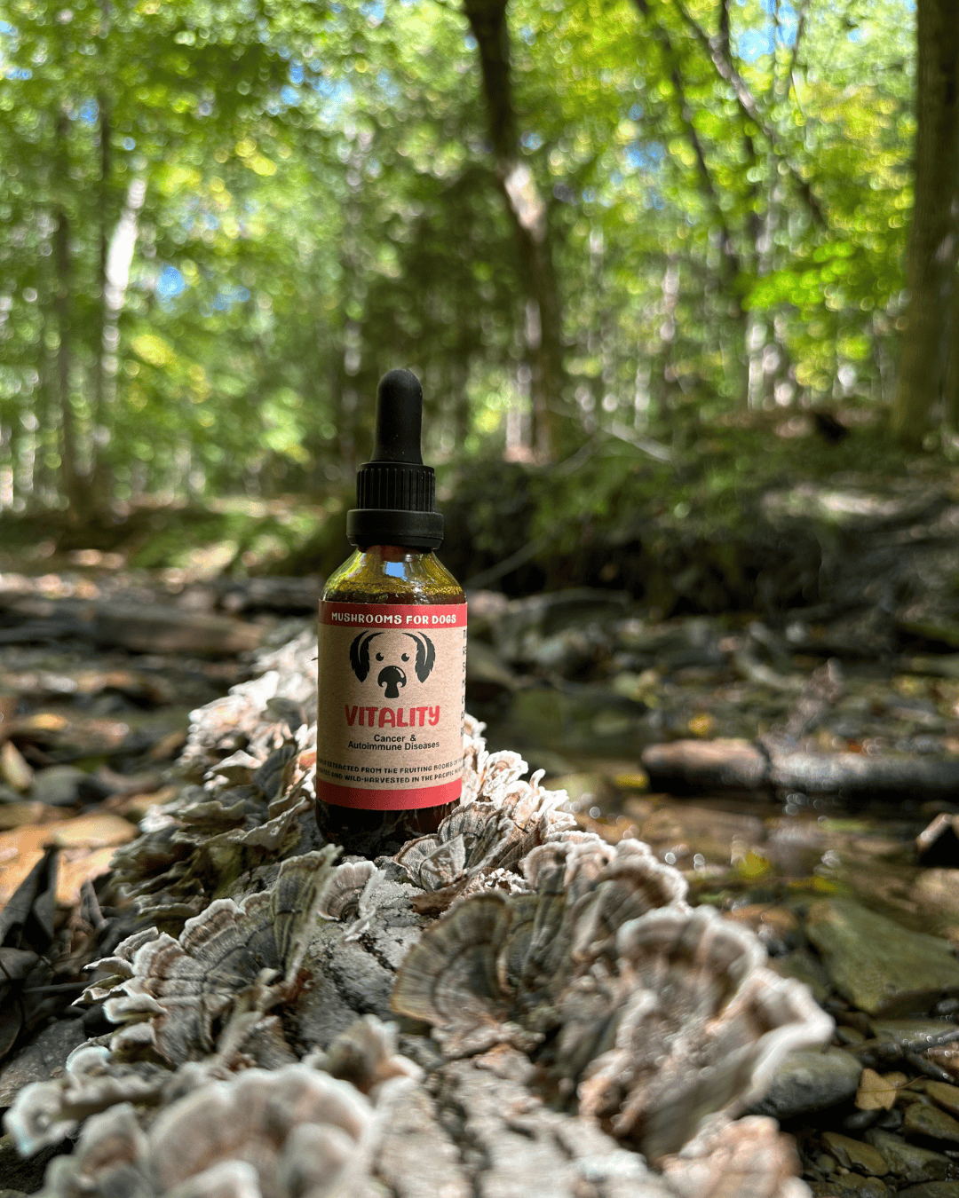 Vitality is a blend of naturally grown mushroom extracts, carefully formulated to support immune function, respiratory health, liver wellness, and cellular integrity. The mushrooms in this formula have been traditionally used to help maintain normal cell turnover and support the body’s natural defense mechanisms—functions that are especially important for pets facing significant wellness challenges.